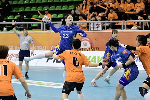 지난 6일 충북 청주 국민생활관에서 열린 2018-2019 SK핸드볼 코리아리그 여자부 3라운드 SK슈가글라이더즈와 인천시청의 경기에서 인천시청이 29-27로 SK를 꺾었다.