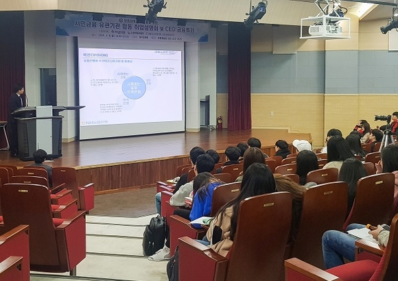 NH농협은행 경남영업본부는 8일 서민금융진흥원, 신용회복위원회와 함께 창원대학교 NH인문홀에서 합동 취업설명회를 가졌다.