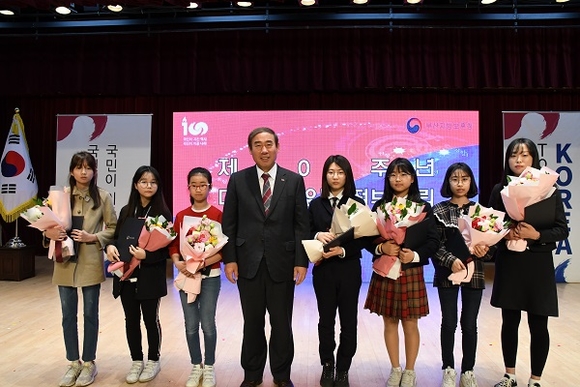 독립정신 이어받기 엽서쓰기대회는 지난달 3·1운동 및 임시정부 수립 100주년을 맞아 부산관내 초·중·고교생을 대상으로 나라의 독립을 위해 희생·공헌한 순국선열 및 애국지사에게 보내는 내용을 주제로 실시했다. 외부 심사위원 심사를 거쳐 총 15명을 선정해 부산시장상, 부산시교육감상, 부산보훈청장상으로 구분해 시상했다.