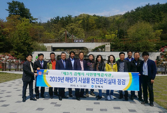 경남 김해시 시민명예감사관들이 해빙기 안전사고 예방을 위해 시설물 안전관리실태를 점검했다.