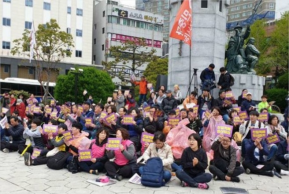 적폐청산·사회대개혁 부산운동본부 강제징용 노동자상 건립특별위원회와 민주노총 부산본부는 지난 14일 오후 2시 부산 동구 초량동에서 규탄대회를 연 데 이어 15일 오전 9시 부산시청 앞에서 규탄대회를 연다고 밝혔다.