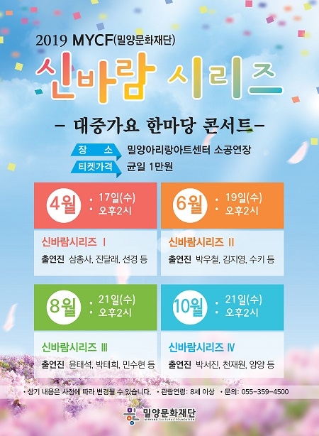 재단법인 밀양문화재단이 기획공연으로 'MYCF(밀양문화재단) 신바람 시리즈'를 개최한다.