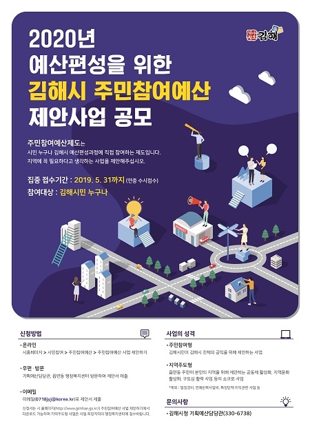 경남 김해시는 내년도 예산편성에 반영할 '주민참여예산 제안사업'을 공모한다고 17일 밝혔다.