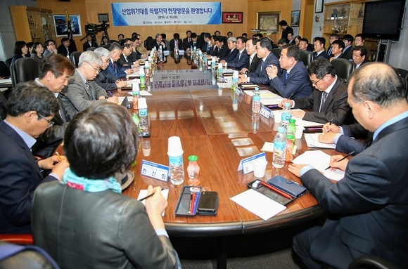 대통령직속 국가균형발전위원회가 16일 주력산업 침체로 어려움을 겪고 있는 '산업위기대응특별지역'인 경남을 방문해 현장간담회를 개최하고, 산업위기 조기 극복 방안을 모색했다.