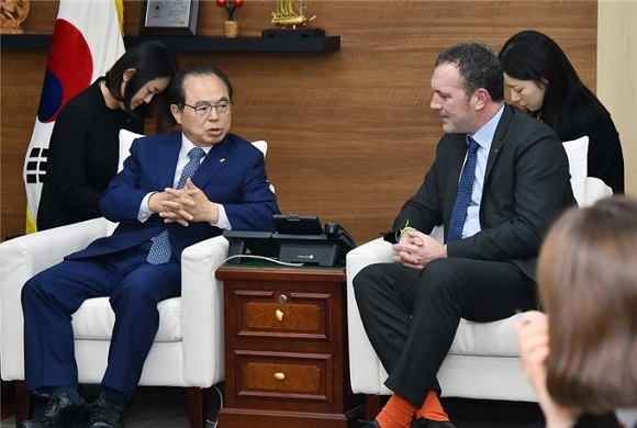 부산시는 지난 16일 오후 도미닉 시뇨라 르노삼성자동차 사장을 부산시청에 초청해 오거돈 시장과 함께 파업 장기화로 인한 르노삼성차 부산공장 문제를 논의했다고 17일 밝혔다.