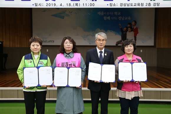 경남도교육청과 전국학교비정규직연대회의가 18일 도교육청에서 임금 및 단체협약 체결식을 가졌다.