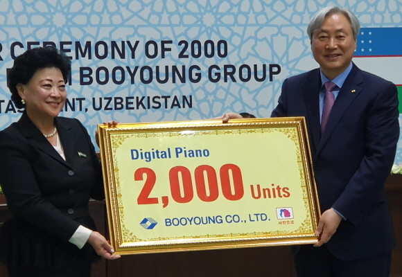 부영그룹은 지난 16일 오후 우즈벡 수도 타슈켄트 유니버설 스포츠 센터에서 디지털 피아노 2000대 기증식을 열었다고 19일 밝혔다.