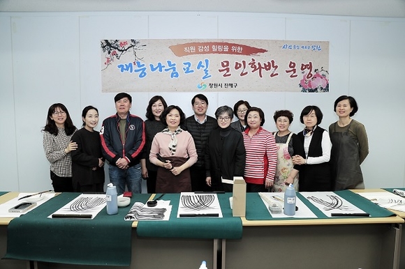 ▲우명희 전 경남도 세정과장은 진해구청에서 매주 수요일 직원들을 대상으로 '재능 나눔 교실 문인화반'을 운영하고 있다. 즐거운 직장 분위기 조성과 더 나은 대민서비스 제공에 기여하는 등 귀감이 되고 있다.