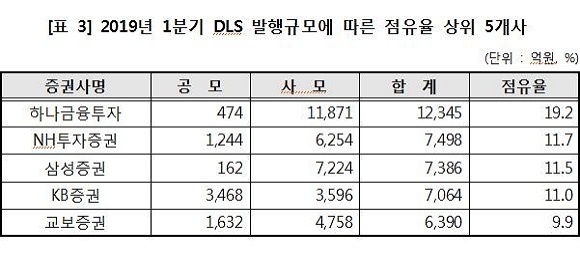 그 가운데 하나금융투자가 1조 2345억원을 발행해 1위를 차지했으며 이어 NH투자증권이 7498억원, 삼성증권이 7386억원을 발행했다.