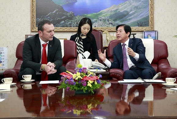 도미닉 시뇨라 르노삼성차 사장은 23일 오전 11시 부산상의를 방문해 허용도 회장과 면담하는 시간을 보냈다.