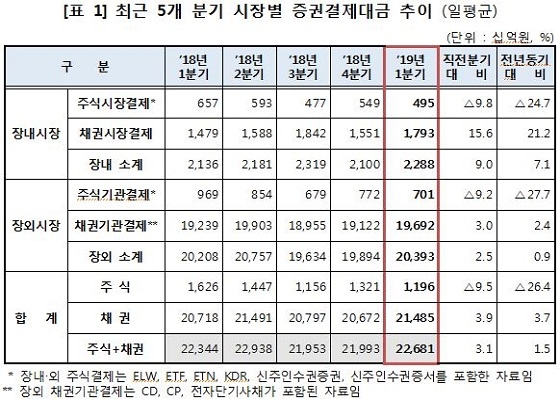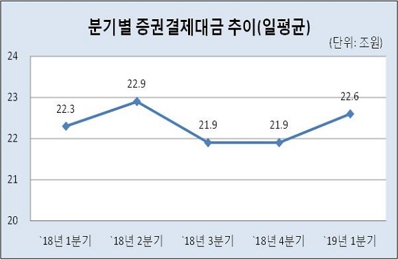 한국예탁결제원은 24일 2019년도 1분기 증권 결제 현황을 발표했다.