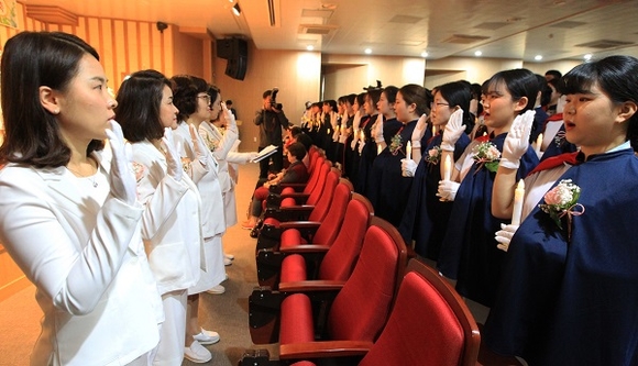 경상대학교 간호대학은 26일 오전 11시 간호대학 복합교육센터 대강당에서 2019년도 나이팅게일 선서식을 개최했다.