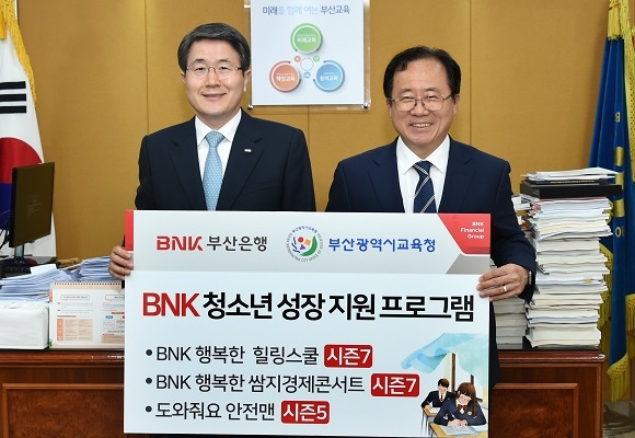 이날 협약으로 시교육청과 BNK금융그룹희망나눔재단은 오는 7월까지 부산지역 청소년들의 올바른 성장을 위한 ▲BNK 행복한 힐링스쿨 시즌7 ▲BNK 행복한 쌈지경제콘서트 시즌7 ▲도와줘요 안전맨 시즌5 등의 프로그램을 운영한다.