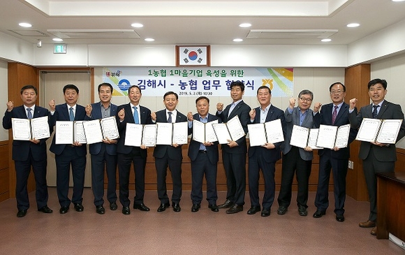경남 김해시와 지역농협이 손잡고 1농협 1마을기업 육성에 나섰다.