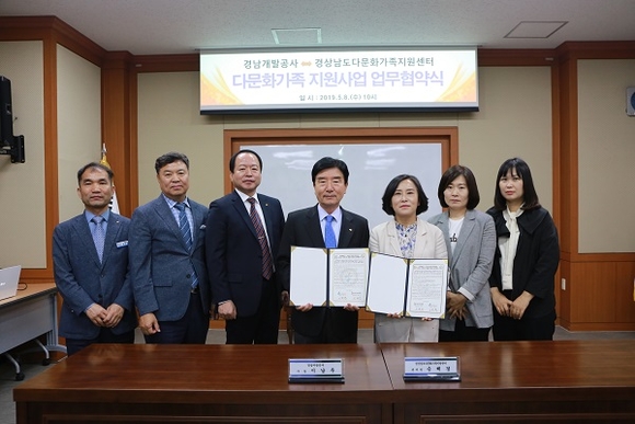 경남개발공사가 8일 공사 3층 상황실에서 경상남도다문화가족지원센터와 다문화가족 맞춤형 지원사업을 위한 업무협약을 체결했다.