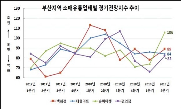 부산상공회의소(부산상의)는 지역 백화점, 대형마트, 슈퍼마켓, 편의점 등 소매유통업 150곳을 대상으로 ‘2분기 소매유통업 경기 전망 조사결과’를 9일 발표했다.