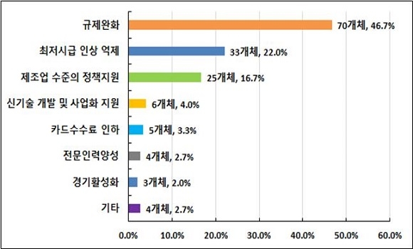 또한 최저시급 인상 억제에 대한 요구도 22%로 높은 비중을 차지했다.
