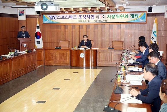 경남 밀양시는 9일 시청 소회의실에서 '밀양 스포츠파크 조성사업 자문위원회' 회의를 개최했다.