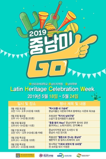 부산외국어대학교는 오는 18일부터 24일까지 학생들과 지역주민, 중남미 이주민들을 대상으로 라틴아메리카 문화에 대해 공감하고 소통할 수 있는 'Latin Heritage Celebration Week'를 개최한다.