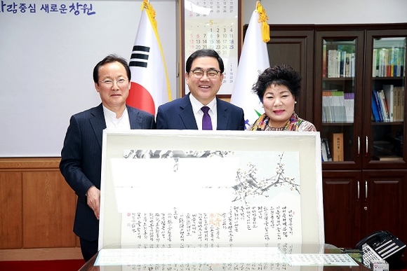 허성무 시장은 창원시청 접견실에서 문인화가 차일수 씨(대방초 교장, 문인화가)와 차일수 씨 부인 서정윤 씨가 참석해 문인화 기증식을 가졌다.