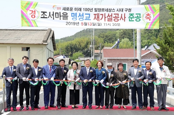 경남 밀양시는 13일 상남면 명성복지회관 마당에서 명성교 재가설 공사 준공식을 가졌다.
