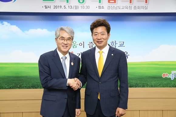 양측은 이 자리에서 고교무상교육 확대, 특성화고등학교 교육력 강화와 취업률 제고 방안, 공립 유치원 신설 확대, 학교시설 내진보강 및 석면 제거 사업 등의 정책추진 현황을 공유하고, 추진과정 상의 어려운 점 및 해결 방안에 대해 집중적으로 논의했다. 또한 경남학생인권조례 제정, 미래교육테마파크 설립, 경남진로교육원 설립 등 운영과정 등 현안사업을 협의했다.