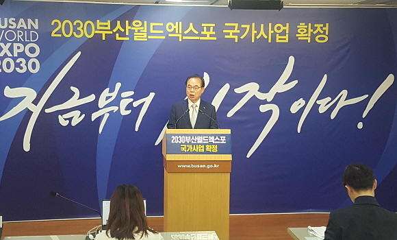 부산시는 14일 오전 시청 브리핑실에서 기자회견을 열고 ‘2030 부산 월드엑스포 유치 계획’이 오늘(14일) 오전 열린 제19회 국무회의를 통과해 국가사업으로 확정됐다고 밝혔다.