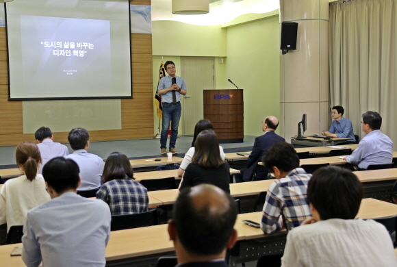 부산항만공사(BPA)가 지난 15일 오후 본사 1층 대강당에서 부산디자인센터 배기범 진흥본부장을 연사로 초청해 ‘새로운 부산항, 공공디자인 혁명’ 직무 특강을 열었다고 16일 밝혔다.