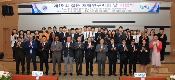 경상대학교는 대학원생의 연구의식을 고취하고 우수한 연구성과를 격려하며, 다양한 학술행사를 개최함으로써 연구중심대학으로 성장하는 기틀을 마련하기 위해 16일 BNIT R&D센터 대회의실에서 '제19회 젊은 개척연구자의 날' 행사를 가졌다.