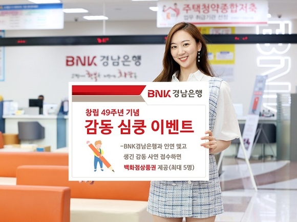 BNK경남은행은 창립 49주년을 맞아 창립일(5월 22일)부터 한 달간 '감동 심쿵 이벤트'를 진행한다고 17일 밝혔다.