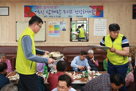 경남농협은 5월 가정의 달을 맞아 지난 17일 하동군 청암면 묵계마을에서 지역 어르신들을 모시고 삼계탕 급식과 깨끗한 농촌마을 만들기 봉사활동을 전개했다.