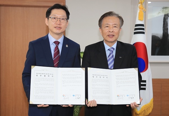 김경수 경남도지사와 이정우 한국장학재단 이사장은 20일 경남도청에서 '학자금 대출 신용유의자 신용회복 지원 사업 업무협약'을 체결했다.