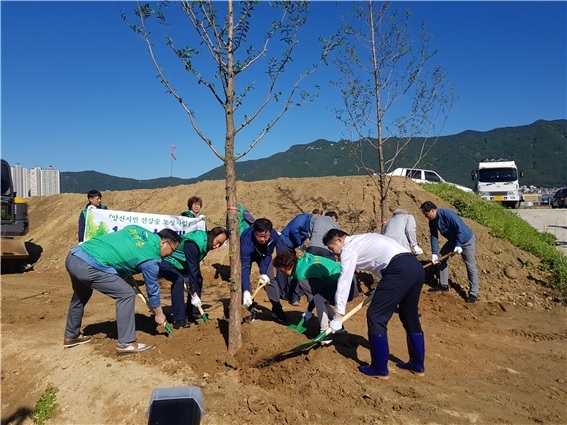 양산시와 부산대학교, 양산시 새마을회에서 공동으로 추진하는 '양산시민 건강숲' 조성사업이 수목식재를 시작하면서 탄력을 받고 있다.