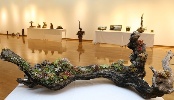 특히 이번 최유숙 다육공예 아트전은 '비상'과 '초록 정원' 등 폐 목재·스티로폼·빈병·빈캔 등 재활용품에 다육식물을 식재해 생명을 불어넣은 작품이 다수 추가됐다.