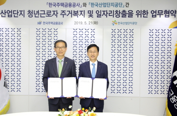한국주택금융공사와 한국산업단지공단이 청년 근로자의 주거 안정과 일자리 창출을 위해 21일 부산국제금융센터(BIFC)에서 ‘산업단지 청년 근로자 주거 복지·일자리 창출 협약’을 체결했다고 밝혔다.