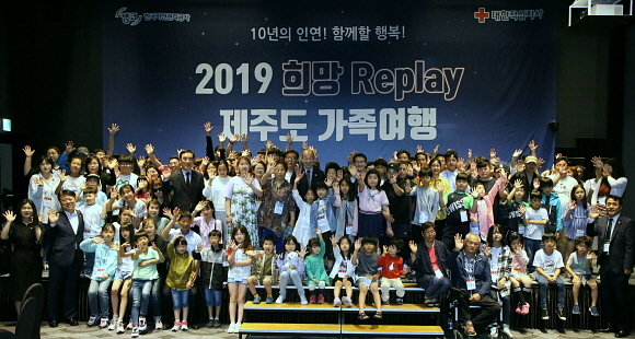 가족여행 첫날인 지난 22일 라마다프라자 제주호텔에서 열린 기념식에서 문창용 사장은 박경서 대한적십자사 회장에게 기부금 2억 2000만원을 전달했다. 또 지난 10년 동안 꾸준히 이 프로그램을 지원해 온 노력으로 박경서 회장으로부터 감사패를 받았다.