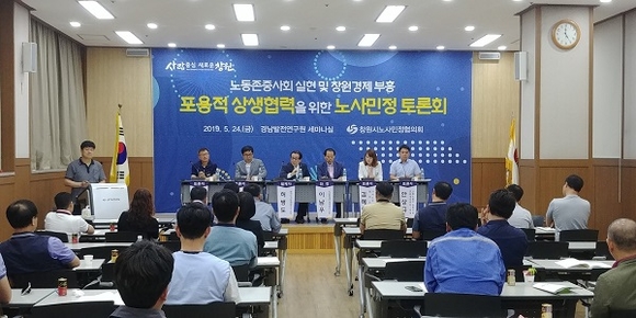 창원시 노사민정협의회는 지난 24일 경남발전연구원 세미나실에서 '포용적 상생협력 노사민정 토론회'를 개최했다.