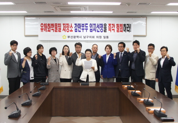 다음날인 21일 부산 남구의회에서도 유해화학물질 저장소로 감만부두가 선정된 데에 대해 반대 성명을 발표하고 계획 철회를 촉구했다.