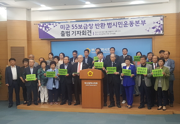 부산시민연대, 부산경제정의실천시민연합 등 지역 시민단체들이 29일 오후 2시 부산시의회 브리핑실에서 ‘미군 55보급창 반환 범시민운동본부’ 출범 기자회견을 열었다.