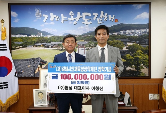 김해시인재육성장학재단은 30일 ㈜협성에서 1억원의 장학기금을 기탁했다고 밝혔다.
