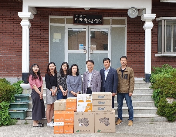 낙동강유역환경청은 가정의 달을 맞아 31일 창원시 사파동 소재 사회복지시설인 경남도중장기청소년쉼터를 찾아 전통시장 상품권과 휴지, 복사용지 등 위문품을 전달하는 이웃사랑 실천행사를 가졌다. (사진=낙동강청 제공)