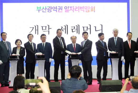 박람회는 BNK부산은행과 부산시 공동 주최, 부산경제진흥원, 부산중소벤처기업청, 부산고용노동청이 주관, 후원했다. 이날 지역 중견·중소기업 130여개사가 참여했다.