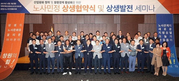 경남 창원시 노사민정협의회는 3일 '노사민정 상생협약식과 상생발전 세미나'를 창원컨벤션센터에서 개최했다.