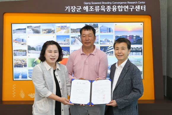 이날 협약식은 고리원자력본부 전두수 대외협력차장, 김옥근 기장군어촌계장협의회 회장, 예미경 해조류육종융합연구센터 소장이 참석한 가운데 열렸다.