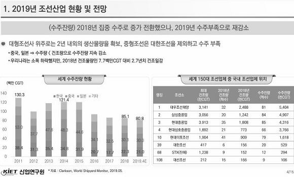 이 박사는 “대형조선사 위주로는 2년 내외의 생산 물량을 확보했으나 중형조선은 대한조선을 제외하고 수주가 부족한 상태”라고 문제점을 지적했다.