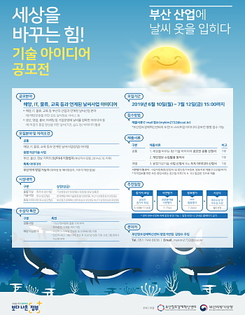 부산시와 부산창조경제혁신센터, 부산지방기상청이 10일부터 내달 12일까지 ‘세상을 바꾸는 힘! 기술 아이디어 공모전’을 공동 개최한다고 밝혔다.