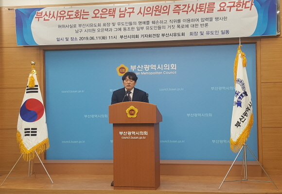 부산시유도회는 11일 오전 부산시의회 3층 브리핑실에서 기자회견을 열고 지난 5일 서정우 회장과 집행부의 갑질·횡포 실태 주장에 대한 반박 입장을 밝혔다.