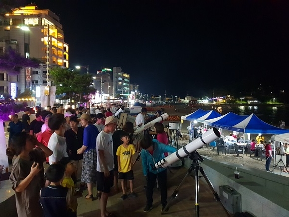 먼저 천체 관측장에서는 천체망원경 8대와 2~3급 천문지도사인 과학 해설사들이 신비한 하늘 여행을 도와준다. 바닷바람 맞으며 백사장에서 자신의 스마트폰에 밤하늘 달을 담는 이색 체험의 기회도 주어진다. 또 올해 전국 천체사진공모전 수상 별사진들도 전시돼 아름다운 우주도 소개할 예정이다.