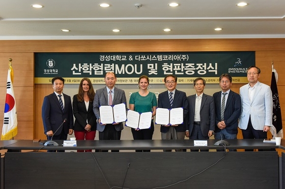 이날 산학협력 MOU와 국제공인시험기관 현판증정식은 김태운 대외협력처장, 윤종태 공과대학장, 안진우 기계메카트로닉스공학부 학부장 등 경성대 관계자들과 다쏘시스템 Ms. Ferret Valerie 교육 부문 부사장, Ms. Biron Gwenaelle 교육부문 상무, 다쏘시스템코리아 상무 등 주요 관계자들이 참석한 가운데 진행됐다.