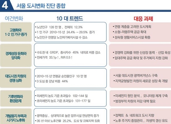 이어 김상일 실장은 사회, 경제적 변화에 따른 서울의 새로운 도시계획 시도를 소개한다. 또 1·2인 가구 증가, 양극화, 기후변화, 개방용지 부족 등 서울 도시계획의 과제를 소개할 예정이다.